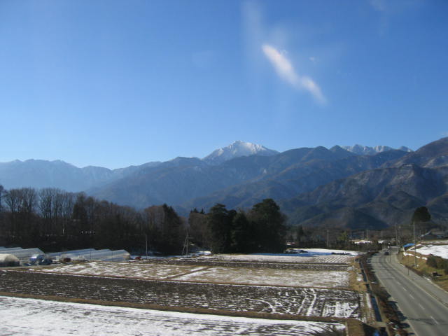 ![]() 1月8日、新宿発八時のあずさで茅野に向います。小淵沢あたりで車窓左に甲斐駒ヶ岳が見え てきました。車窓右にはもちろん八ヶ岳が見えていました。 、 |