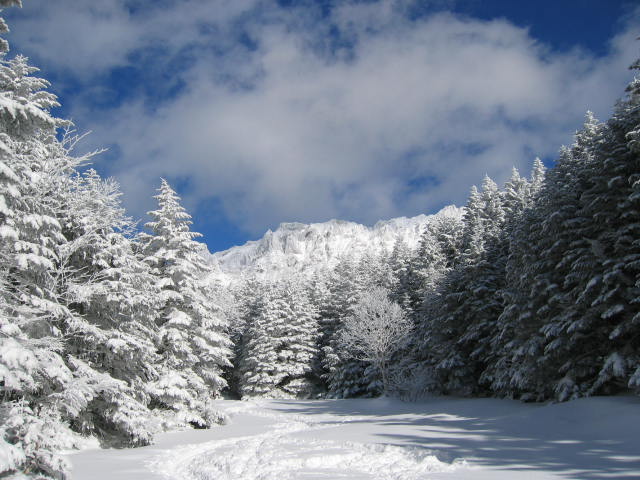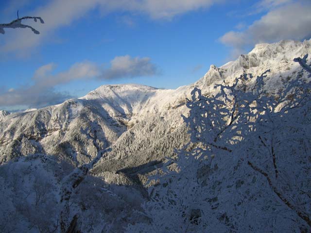 ![]() 9日は強い冬型でたぶん日本海に入った寒気が天気図にない低気圧を作り、朝から雪が シンシンと降っていました。コースを地蔵尾根から赤岳往復というコースに変更、風の強い 中なんとか赤岳に登頂しました。 、 |