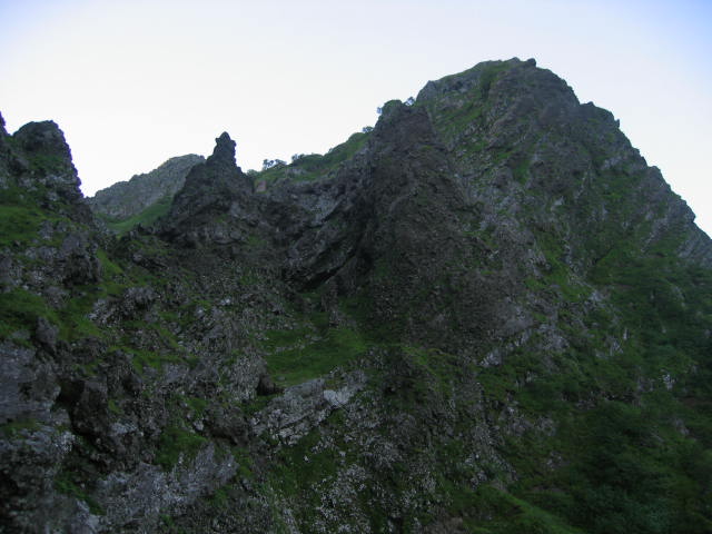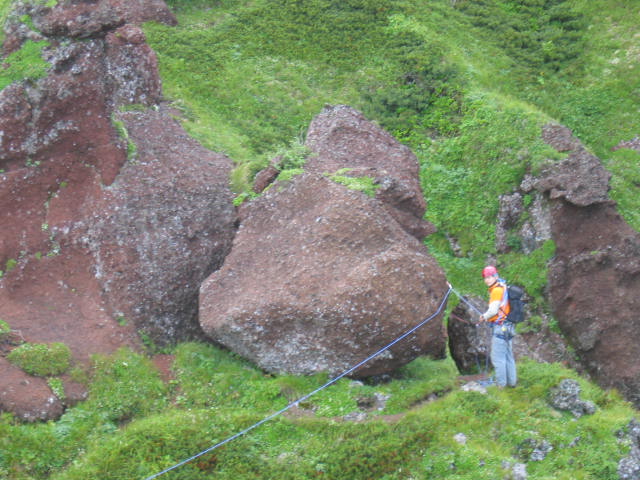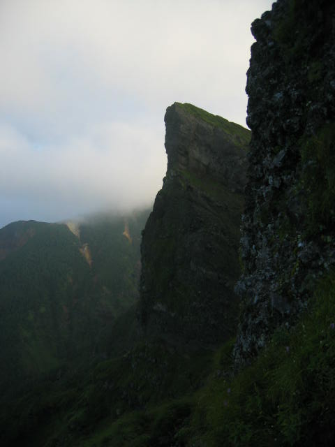 頂上直下の岩場まで岩稜が続き、ほぼコンテでクリアする。 、 |