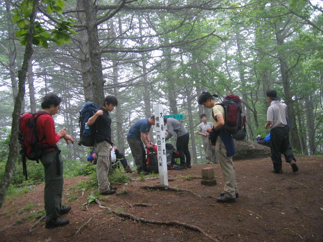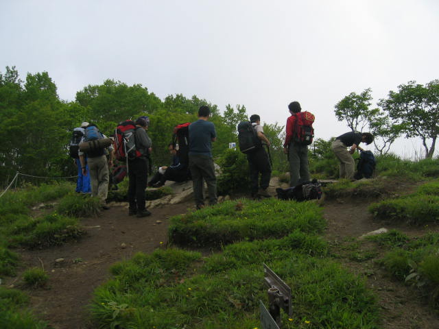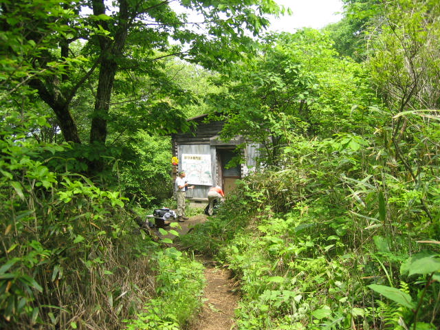 湯の沢峠の避難小屋です。中はきれいで、10人は泊まれます。この小屋の前まで林道が延びていてタクシーが来てくれました。10時30分に車中爆睡の人となる。 、 |