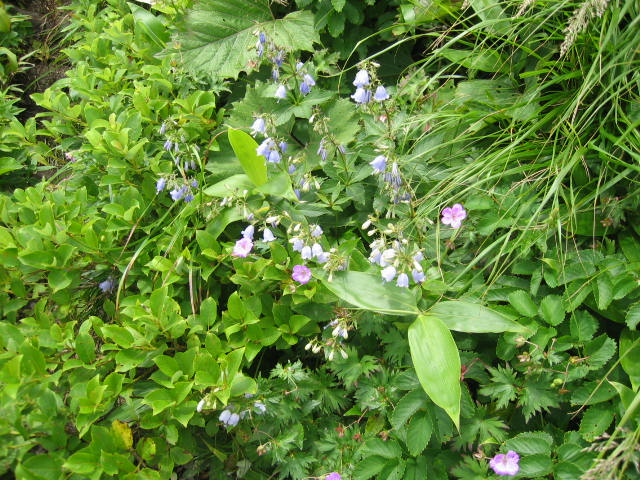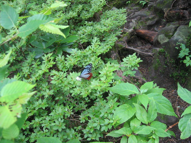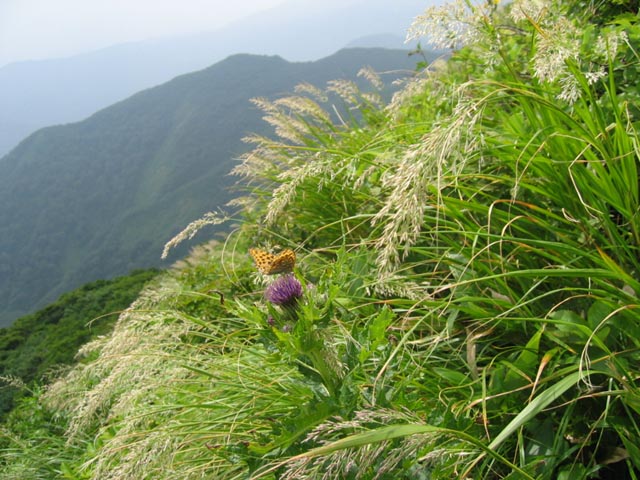 夏油温泉側からの縦走路は人が少なくて、道は半分藪にかくれてフカフカの土。 、 |