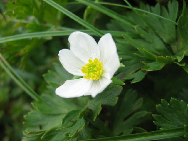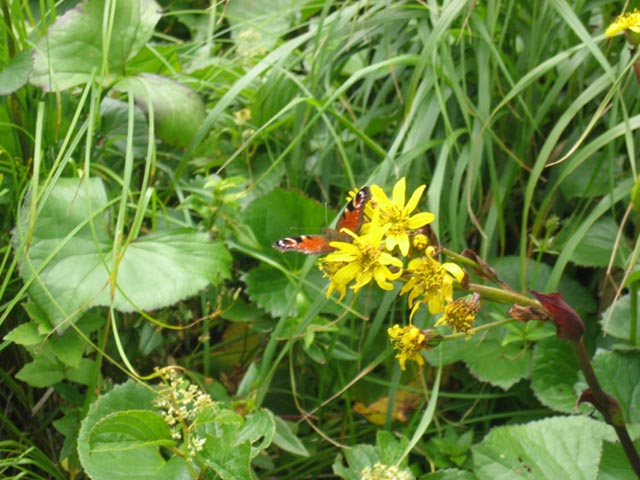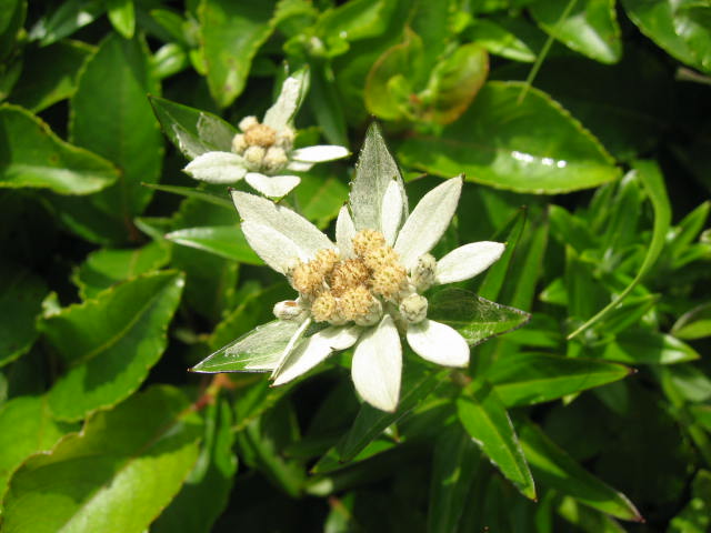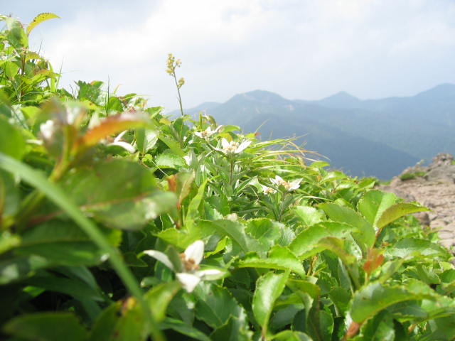 経ヶ岳の山頂に四時間ほどで到着、山頂にはウスユキ草の群落が点在していました。 、 |
