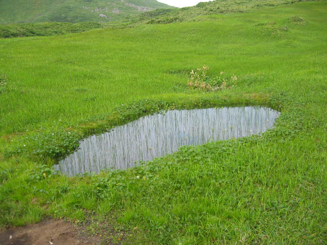 中沼コースを下りました。これは上沼の写真です。中沼はもっと大きいです。 下沼はあるのかな? 、 |