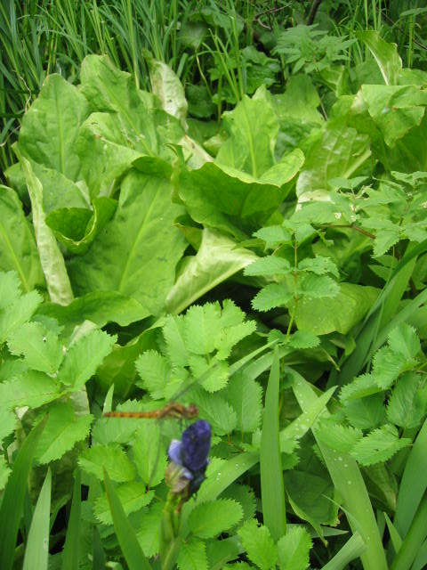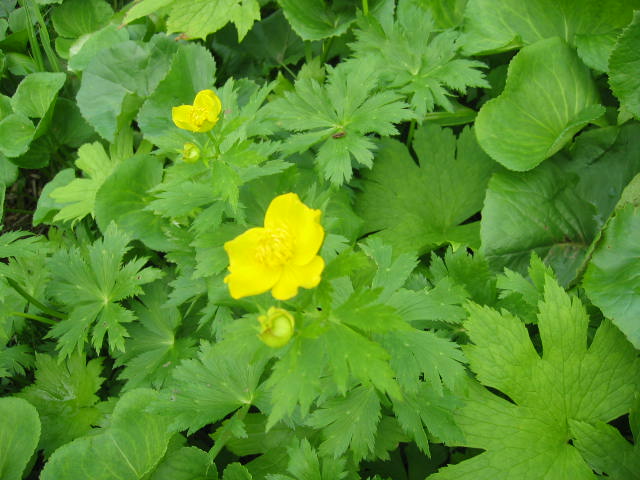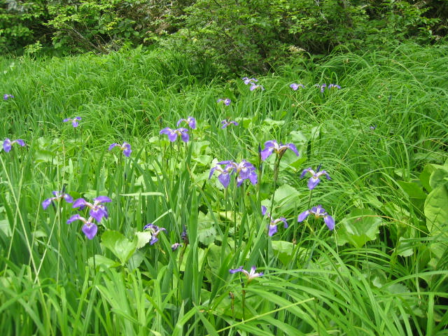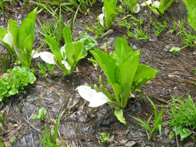 爆裂火口は湿原に変わり、湿原の小川にそってかわいい小さな水芭蕉が咲いていあました。 、 |