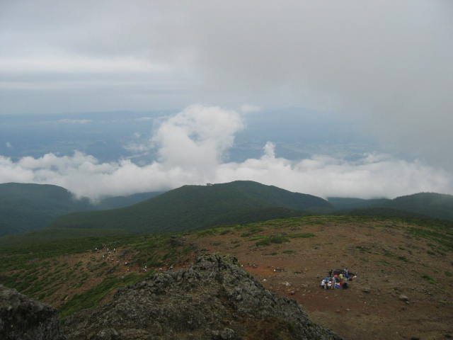 大気の状態が不安定で、曇り時々雨のあいにくの1日でした。山頂から二本松方面をパチリ。 、 |