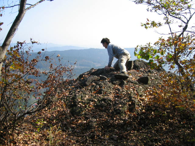 ![]() ワンピッチでザンゲ岩に出ました。下をのぞきこむけど、コワイコワイ。 、 |