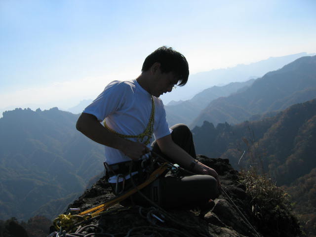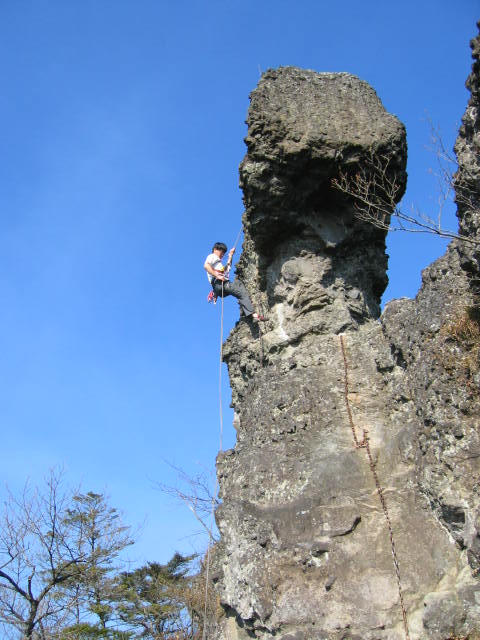 ![]() 5人のメンバーが丁須岩を登り下りするのを確保し終えて懸垂下降です。 、 |