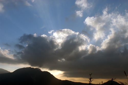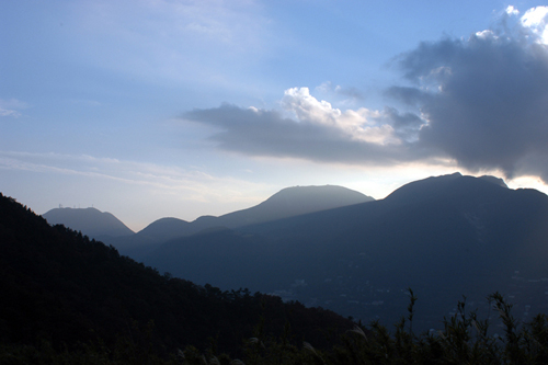 ![]() 太陽が西に傾くころに青空が見えてきました。盟主である箱根山も姿を現 しました。 、 |