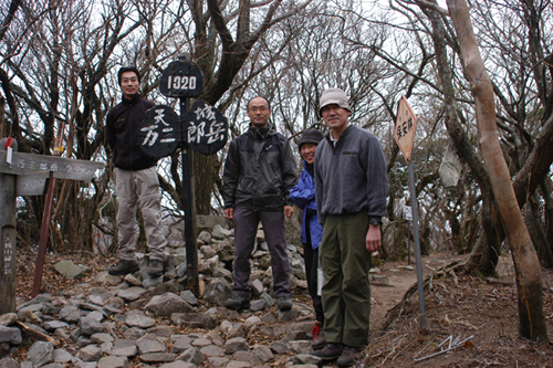 ![]() 万二郎岳山頂での記念写真です。天気予報は残念ながら雨。 この時点では降ってはいませんが、曇って展望はまったくありませんでした。 しかし、登り始めて間もなく、家族連れの鹿に出会うなど、 その後のドラマチックな展開を暗示するような出だしでした。 、 |