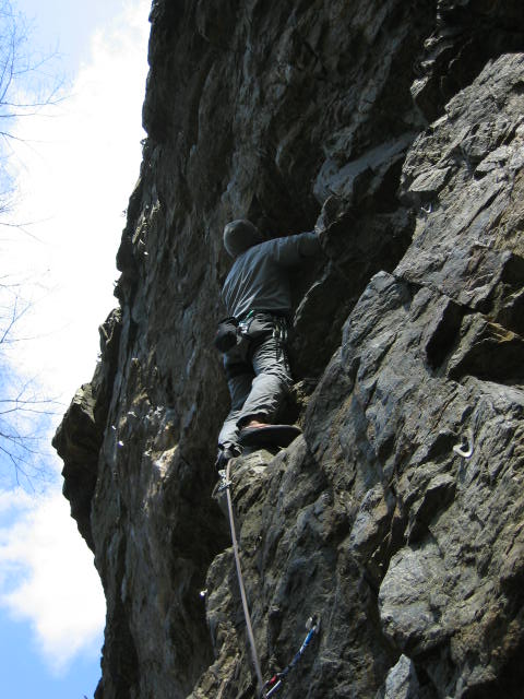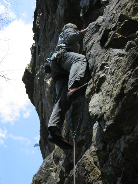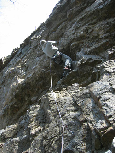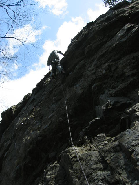 下から三分の一の所にテラスがあってレスト出来ます。でもそのテラスまで登るのはどのルート もちょっと難しい(5.9ぐらい)です。 、 |