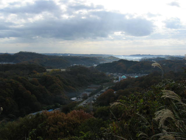 南のエリア前の広場の眺望、湯本の街を超えて太平洋が臨まれる。 , |