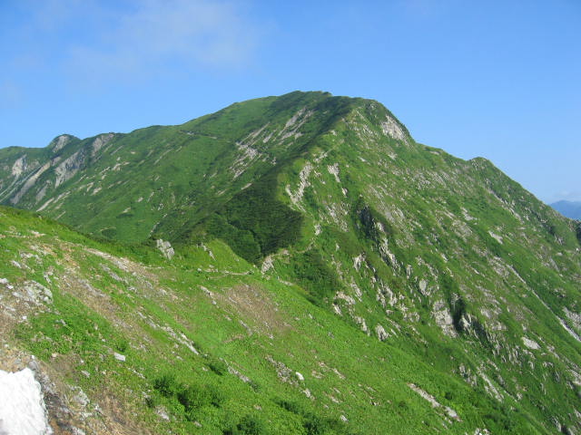 右奥の山が大日岳です。ぼくらは往路を戻り剣沢に向かいました。 、 |