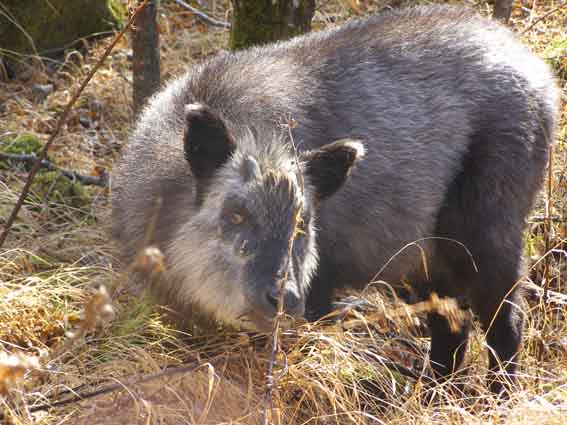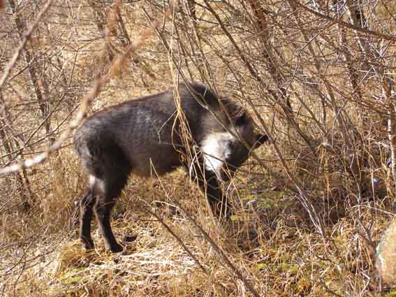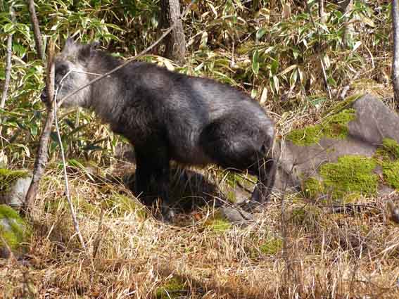 先週の月曜日、日曜日の雨が山は雪だった見たいで真っ白に変身していました。 早速カメラを持って山を撮りに行きました、県会尾根の登山口にいき写真を撮って帰ろうとしたら、珍しいカモシカに出会いました。 カモシカはこれまでに何回も遭っているので珍しくは無いのですが、そのカモシカは人間を怖がらないのです、1m位まで近づきました、あと少しでさわれるのですが、さすがにさわれなかったです。 後で写真に残っている記録には40分近く一緒にいたのです。 おかげで非常に貴重なものを見せてくれました。 まず、ひとつは野生の物はめったに見せない排泄の場面を堂々と30秒ほど目の前でしてくれました。 その次はマーキングをしてくれました、後で、匂いを嗅いだら甘酸っぱい匂いでした。 目の下に有るほくろのような物がフェロモンの入れ物のようです。 |