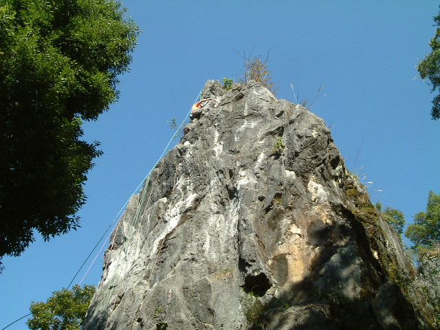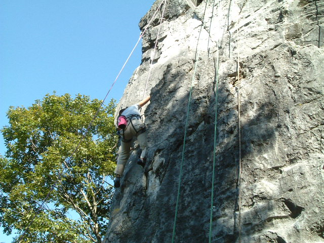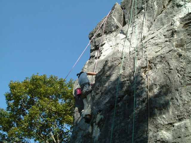 右から登ってトップロープを張りました。全体にプロテクションが少ないです。