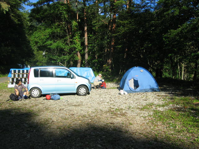 白川ラーメンを食べに行って、再び甲子温泉 手前の駐車スペースのテントに戻る。 , |