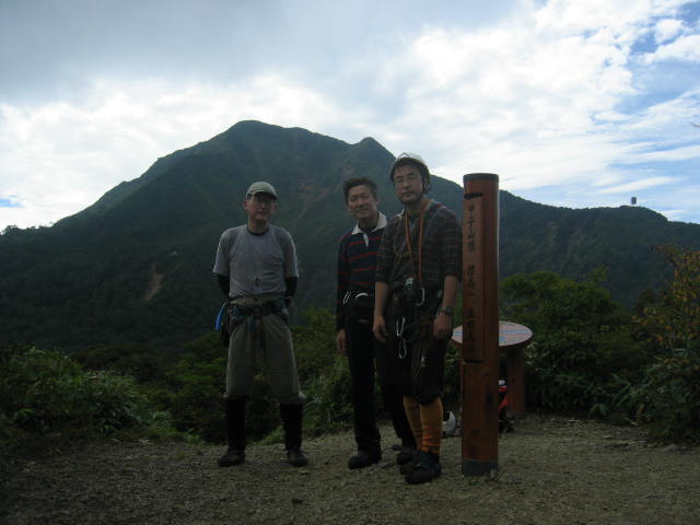 樋丈のスラブは頂上直下まで続き、藪こぎわ ずか10メートルでぴったり山頂に飛び出した。 , 甲子山の山頂にて、バックは旭日岳。 , , 帰りは石鹸とシャンプーのある温泉ということ で新甲子温泉のふじやホテルの風呂に入っ た。入浴料は500円だった。甲子温泉の大 黒屋は満員なのに、新甲子温泉のふじやホ テルは人影もまばら。登山者のとっては穴場 というべき温泉かも知れない。 |