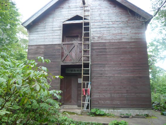![]() 三石山荘は新築したばかり、池とうの中に建っている。 、 |