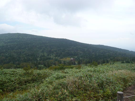 ![]() 三石山への登山道から三石山荘を見おろす。 、 |