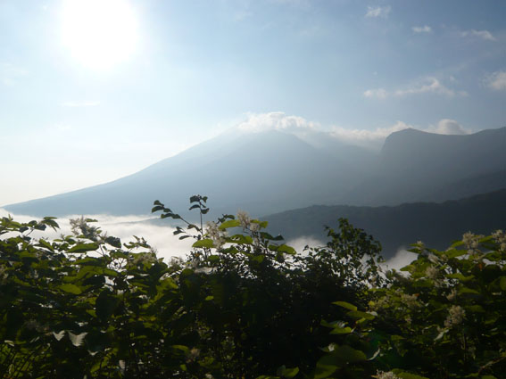 ![]() 池袋三越裏23:50発から夜行バスらくちん号(三列座席、リクライニング、足元狭し) で盛岡着6:30、盛岡から路線バスで松川温泉着8:30、三石山に向けて登る途中で 岩手山が望まれる。 、 |