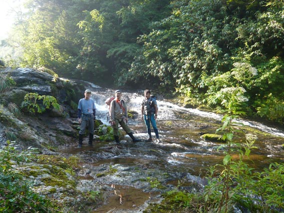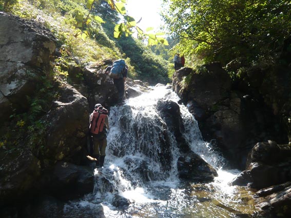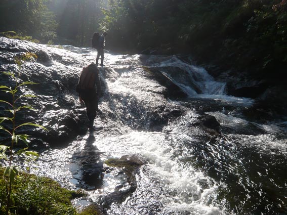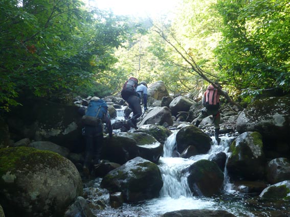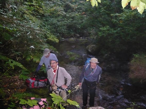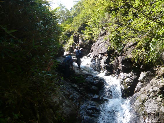 ![]() 約2時間、水量の増した関東沢を下る。 、 |