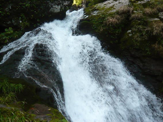 ![]() 前回は左俣を登ったので、今回は右俣に入る、はじめナメ、次に長めのゴーロ、 そして小滝が続く。 、 |