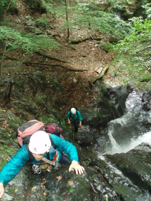 水根沢1、水量が適度で直登可能であればザイルはほとんど使用しないで遡行できます。高巻きの方がむしろ厳しい典型的な沢のひとつです。 , |