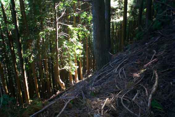 ![]() エアリアマップに登山道の記載がない袖平山に直接登る尾根を行く。 所々道が無くなるが概ねフカフカで最高に歩きやすい道になっている。 、 |